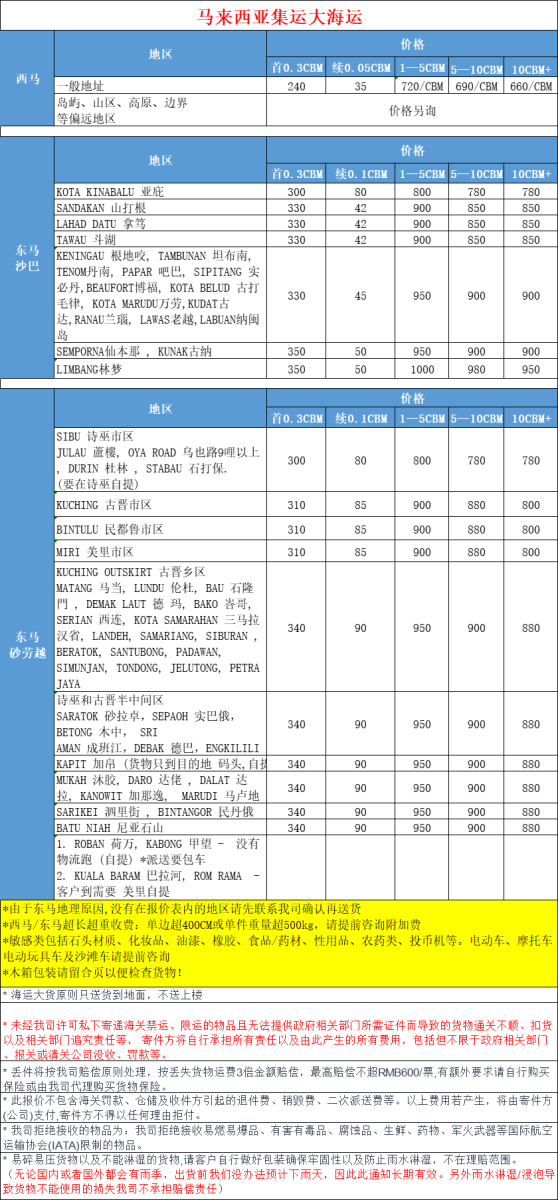 我司推出西马大货海运特惠渠道,1到5CBM,RMB680/CBM;5个方以上,RMB660/CBM!最低消费1个方,此渠道仅限于大货,非集运订单。5个方以上的敏感请单独询问报价;